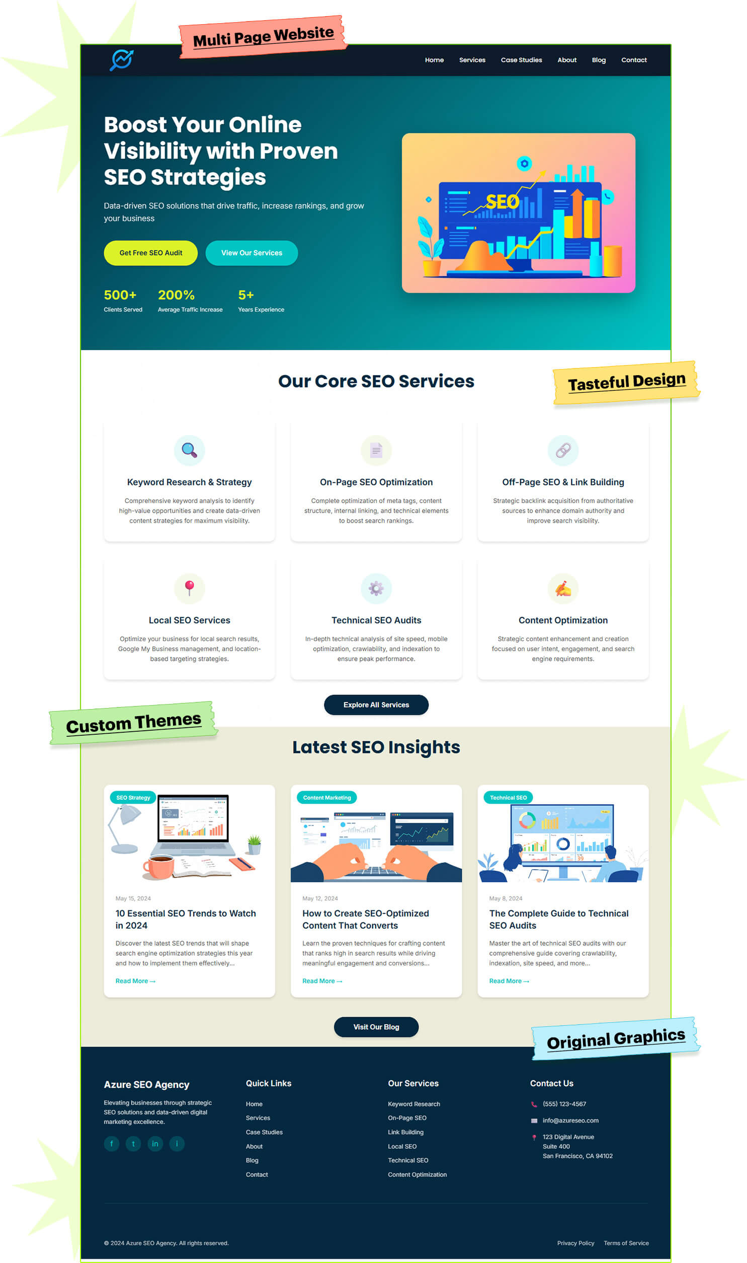 Our AI handles layout, design, content, branding, and publishing so you can focus on growing your business.